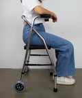 Andador plegable de 2 ruedas, asiento y respaldo