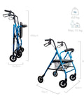 Deambulatore pieghevole a 4 ruote con freni sui manici