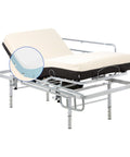 - Altura ajustável: Personalize a cama articulada conforme as suas necessidades com pés fixos de 25 cm ou pés reguláveis em 4 alturas (38–53 cm), facilitando tanto o acesso do paciente como o trabalho do cuidador.