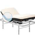 - Altura ajustável: Personalize a cama articulada conforme as suas necessidades com pés fixos de 25 cm ou pés reguláveis em 4 alturas (38–53 cm), facilitando tanto o acesso do paciente como o trabalho do cuidador.