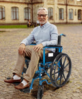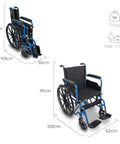 Sedia a rotelle pieghevole con ruote grandi estraibili, colore blu