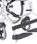 - Ruote posteriori da 600 mm, solide, con cerchi scanalati e sistema di sgancio rapido per facile trasporto e stoccaggio