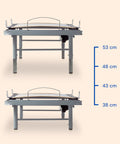 • Altura ajustável: Personalize a cama conforme as suas necessidades com pés fixos de 25 cm ou pés reguláveis em 4 alturas (38–53 cm), facilitando tanto o acesso do paciente como o trabalho do cuidador.