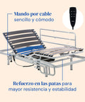 • Cama articulada: Estrado elétrico com estrutura em aço reforçado e ripas largas de madeira para um apoio seguro. Regula-se facilmente com comando por cabo, permitindo articular o encosto e as pernas com total comodidade. Compatível com acessórios opcionais.